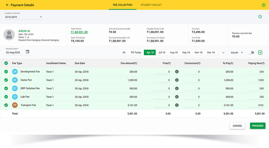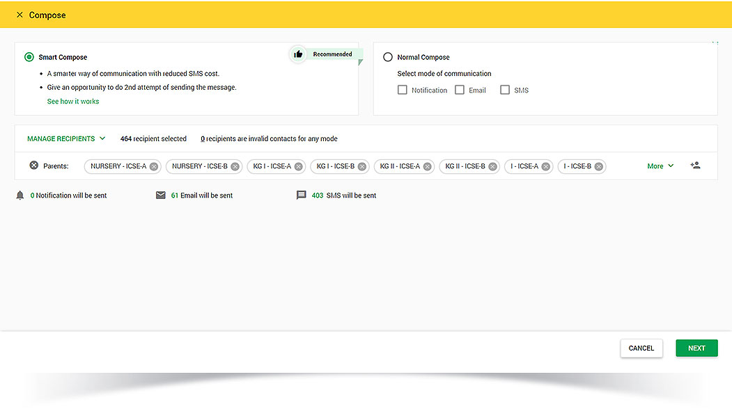 This feature makes communication among different stakeholders easy and effective. It is equipped with an automatic alert system so that schools can conveniently send text messages, emails and notifications about school closing, reminders and emergency messages, saving them both time and money. The in-app chat feature allows easy communication between the staff members as well as between parents and teachers.